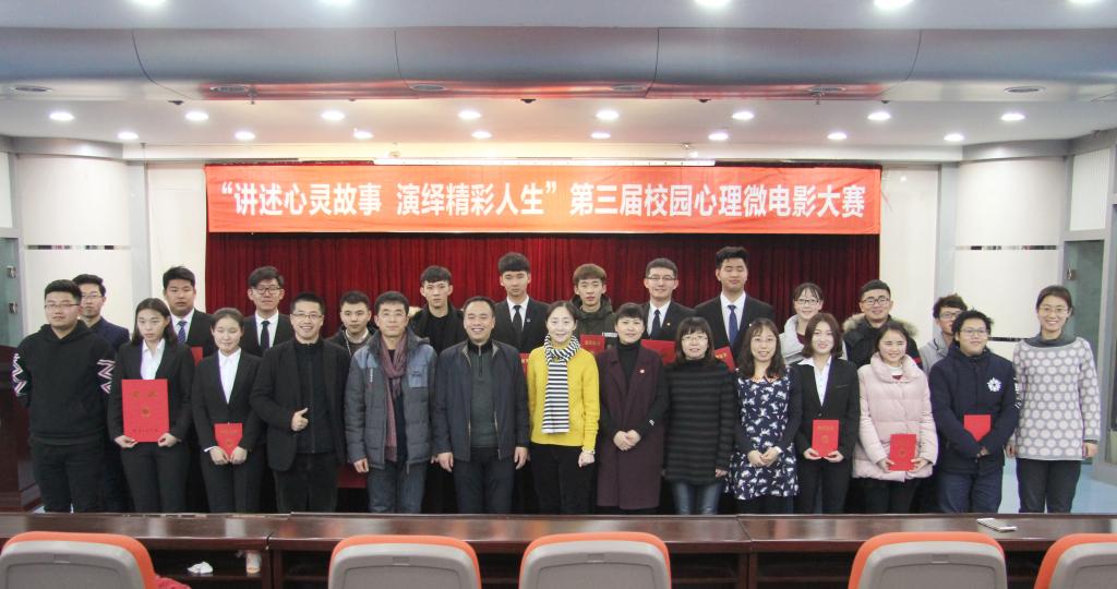 为丰富我校大学生的校园文化生活,进一步推进大学生心理健康教育工作。12月19日晚,由学生工作部(处)、大学生心理健康教育咨询中心主办,大学生思想政治素质建设委员会承办的“讲述心灵故事 演绎精彩人生”第三届校园心理微电影大赛在湖西校区第七教学楼十三楼报告厅举行。此次活动是学生工作部(处)在全校范围内开展的“砥砺前行的五年复兴路上勇担当”大学生思想政治教育系列活动中的最后一项活动。学生工作部(处)、宣传部、校团委、大学生心理健康教育咨询中心的负责人和相关老师出席并担任评委,各学院学生代表近300人参加了活动。