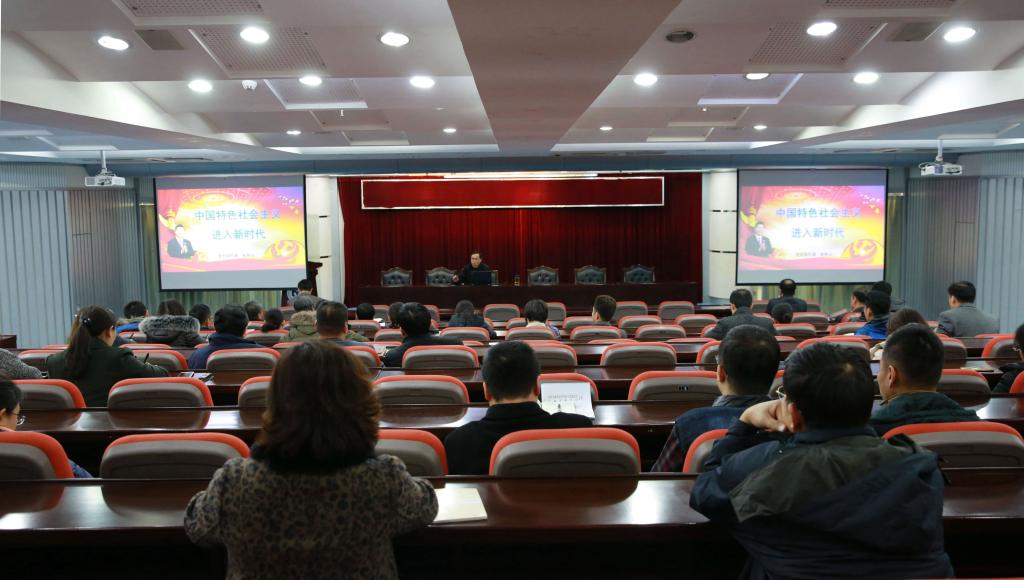 11月30日上午,我校党的十九大精神宣讲团在七教十三楼报告厅举行首场报告会,党委宣传部部长蒋孝山为机关党委、研究生学院、国际教育学院的全体教职工作了题为《中国特色社会主义进入新时代》的辅导报告。报告会由机关党委书记王新忠主持。
