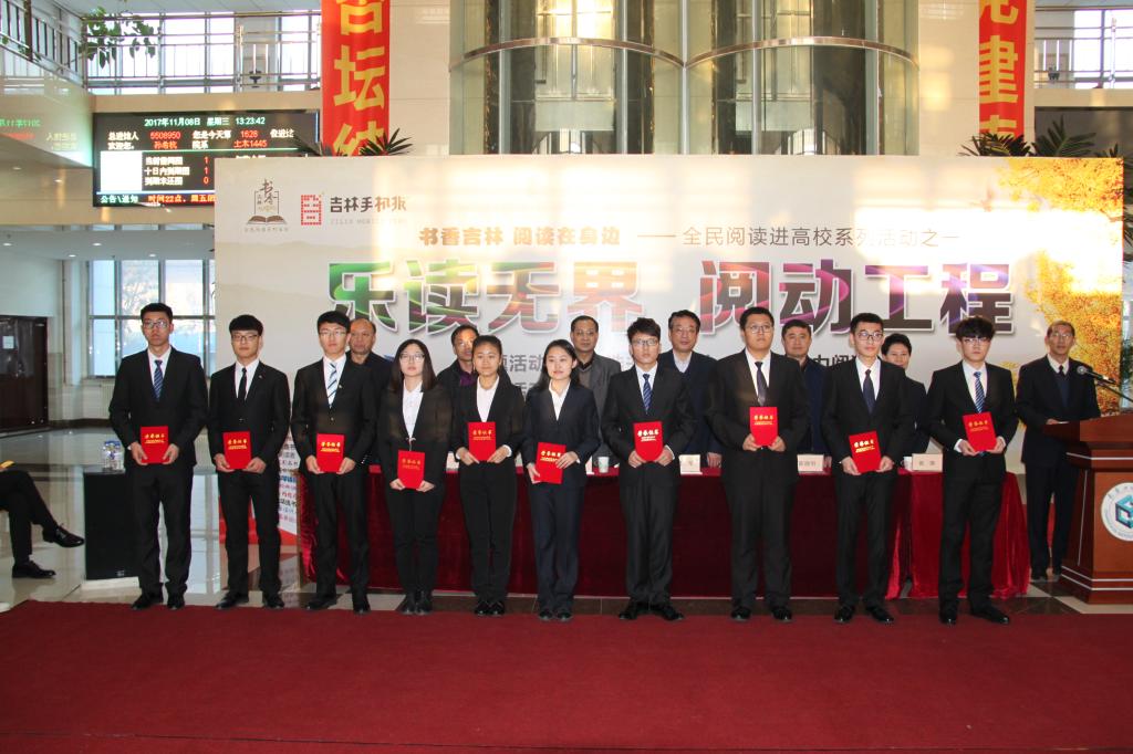 11月8日,“乐读无界,阅动工程——压球手机在线官网全民阅读进高校”活动在我校图书馆举行。本次活动是“书香吉林,阅读在身边”主题系列活动的重要组成部分,活动由吉林省新闻出版广电局、吉林日报社、吉林省高等压球手机在线官网工作委员会主办,压球手机在线官网、吉林手机报社、吉林省高等压球手机在线官网图书情报工作委员会、吉林省外文书店承办。我校党委副书记温义生、副校长窦立军,吉林省新闻出版广电局公共服务处副处长陈晓明,我校宣传部、图书馆负责人,以及师生代表500余人参加了本次活动。