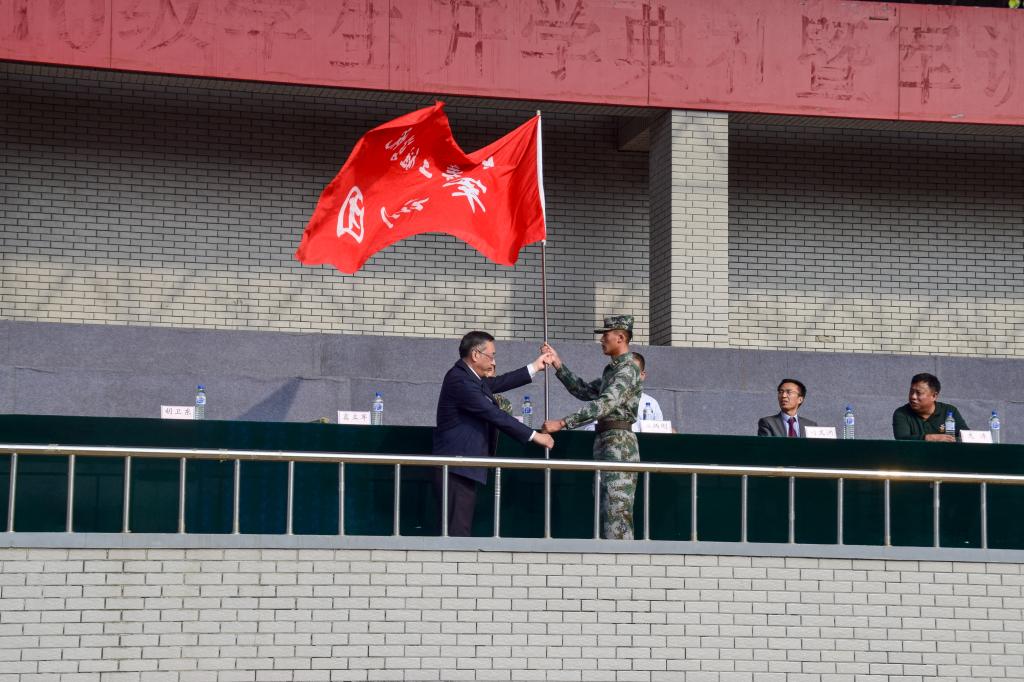 窦立军副校长为本次军训人员授旗并宣布2017级新生军训正式开始。