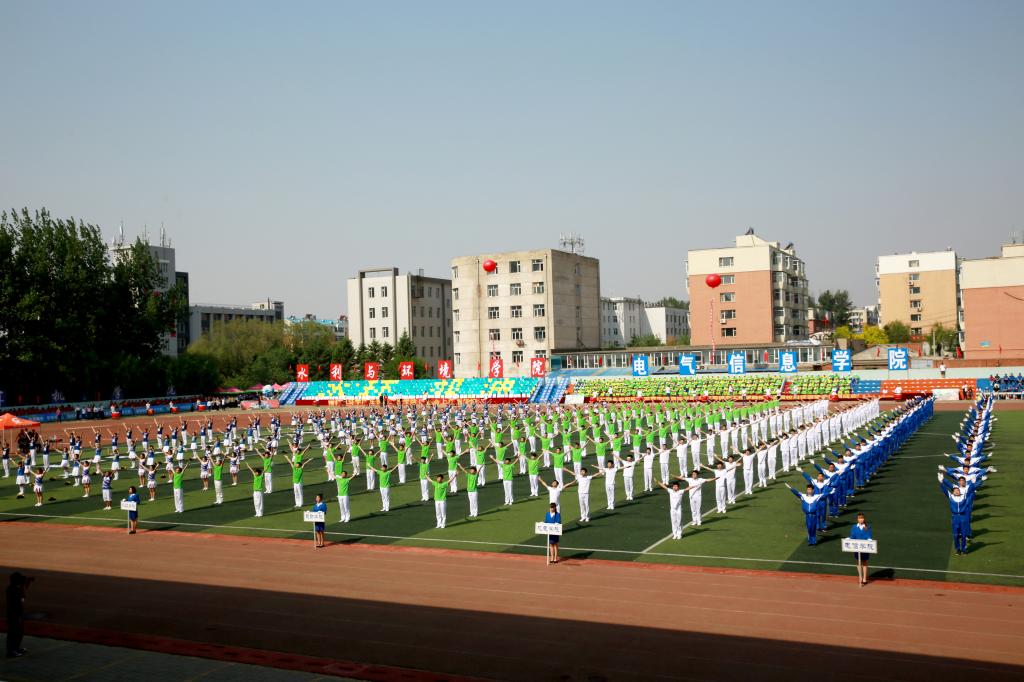 运动员退场后,精彩的团体项目表演开始。广播操项目中,480多名大学生和着优美的韵律,踏着青春的节拍,展现了长工程学子团结进取、意气风发的精神风貌。理学院、电气与信息工程学院、水利与环境工程学院带来的健美操表演则展示出大学生的青春活力。