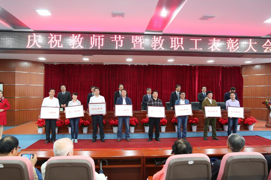 9月9日,在第32个教师节来临前夕,我校在逸夫图书馆报告厅隆重召开庆祝大会,表彰我校近年来在“三育人”、教学、科研工作中涌现出来的先进集体和先进个人。压球手机在线官网领导、关工委负责人、教学督导组成员、部分科处级干部、教职工代表和学生代表参加大会。