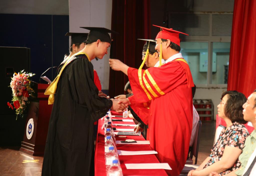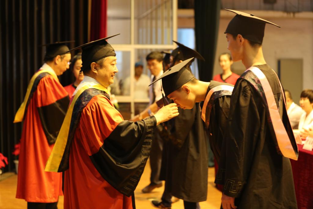 韩立强校长在致辞中,与2016届毕业生诠释了两句最简朴的话语:第一句是“学无止境”。有人说:学到的知识减掉你所有忘记的内容,剩下来的东西就是能力和素质。同学们今天拿到了毕业证,就如同拿到了驾照,你已经有了上路的资格和基本能力。换句话说,你们有资格、也有初步能力进入相关专业领域工作了。但是,能否一帆风顺地驶向快车道,顺利前行,这既和你练车时学的是否扎实有关,也与你在实践中能否不断学习、不断总结提高有关,最后的胜利属于始终坚持学习的人。希望大家在工作实践中做个有心人,在实践中不断学习、不断锻炼提高自己。第二句是“担当责任”。我们每个人都是生存于社会群体中的个体,每个人都希望得到他人的帮助、支持、关心、理解、承认和尊重,我们把帮助和尊重我们的人往往称为“好人”,如果我们时刻用“好人”的价值标准约束自己,我们也能成为受人欢迎的“好人”。同学们是未来的工程师,今后无论面对什么样的挑战和诱惑,无论身处何种境况,我希望你们都要做一个爱自然、爱人类、爱国家的知识分子,做一个有强烈社会责任感的工程技术专家,做一个诚信友善的守法公民。同学们要牢记,这既是党和国家的要求,也是社会发展的必然,更是你们生活幸福和事业成功的保障。