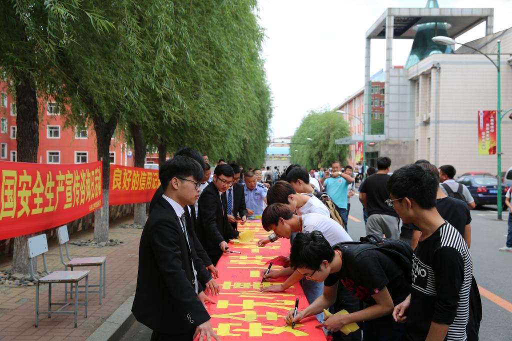 活动期间,压球手机在线官网领导李岩峰、韩立强、杨永生来到活动现场并签名,号召全校师生高度重视校园安全生产,做好安全生产工作,确保压球手机在线官网的安全。