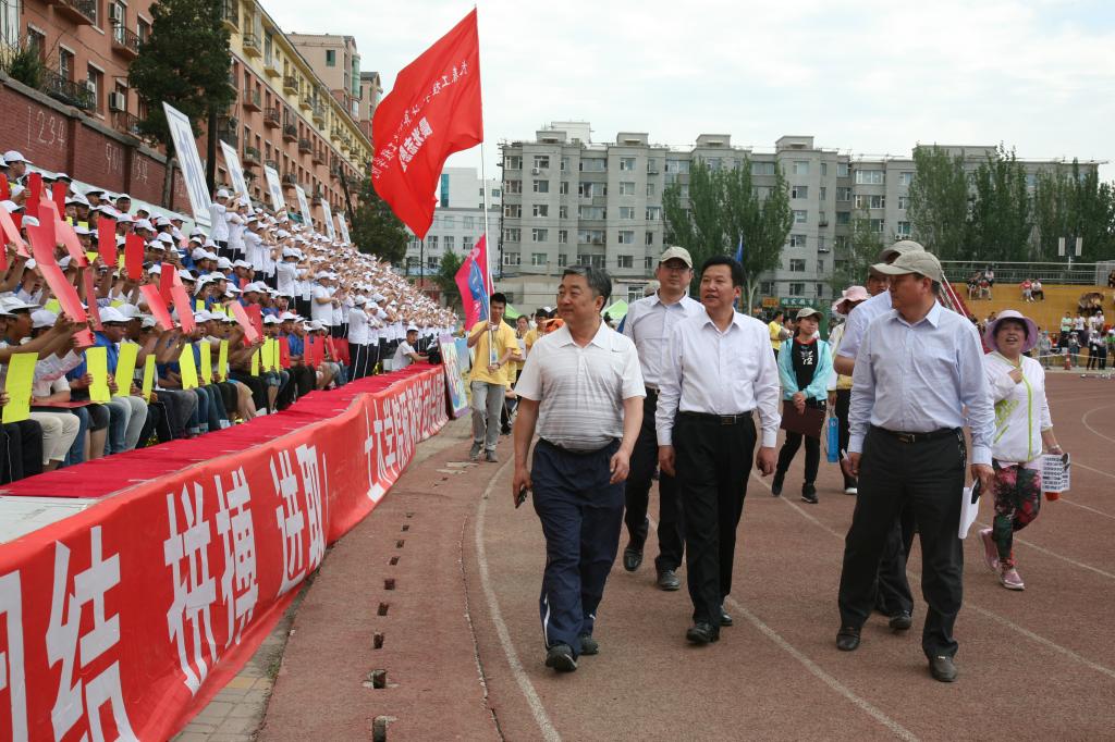 李岩峰书记、别惠彬副书记在比赛期间,来到运动场中向运动员和观众表达了祝贺和慰问。