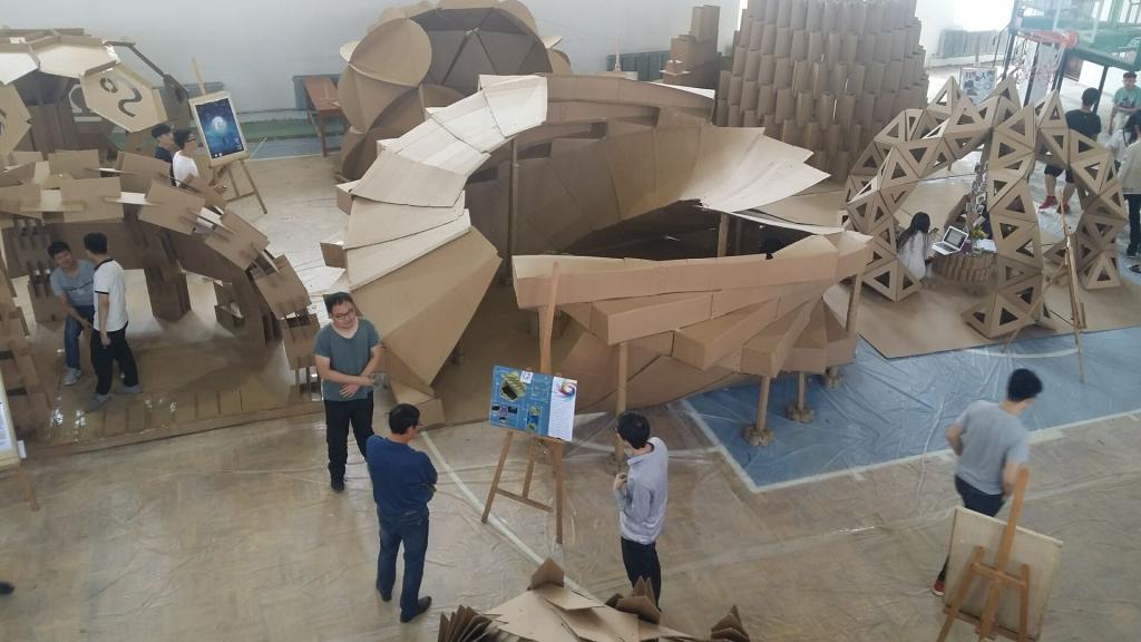 整个赛程历经两个月,包括各组的小模型的设计创意论证,专家评选打分,搭建前两天之内对材料进行切割,以及最后现场组装建造的一系列过程。在这个过程中,同学和老师都投入了极大的热情,多少个不眠不休的夜晚,多少次反反复复的实验,在经过了数不清的失败与意外之后,最终19件作品成功的终于搭建起来。