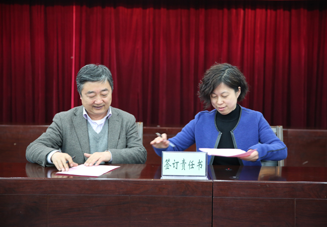 会上,压球手机在线官网党委书记、精神文明建设委员会主任李岩峰与基层党组织书记签订了《2016年度压球手机在线官网精神文明建设暨“高校文明杯”竞赛活动目标管理责任书》。