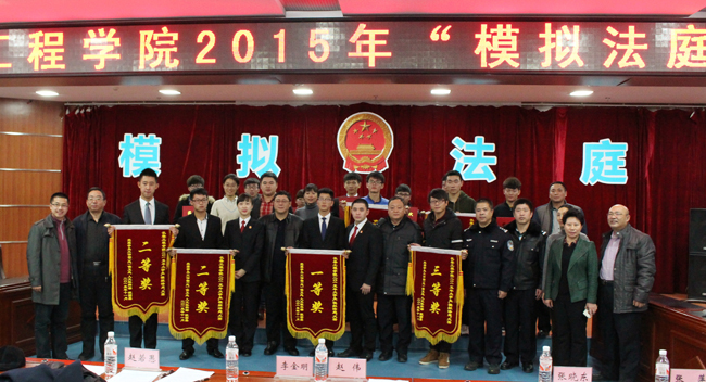 为培育和践行社会主义核心价值观,推进我校大学生思想政治教育工作的深入开展,打造有工程特色的校园“工程师文化”。本学期,我校开展了以“践行社会主义核心价值观 推进校园工程师文化建设”为主题的系列思想政治教育活动。其中“模拟法庭大赛”作为系列活动的重点项目,总决赛于11月25日下午在逸夫图书馆八楼报告厅如期举行。长春市朝阳区人民法院刑事审判庭赵若愚、朱红微、房久玲三位法官,长春市公安局宽平大路派出所教导员赵伟警官,长春市湖西街道司法所张晓东警官、综治办胥丽梅主任,学生工作部、保卫处、宣传部、团委、就业指导中心、人文社科部、图书馆等部门负责人出席并担任了本次大赛评委。
