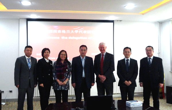 10月13日,由英国西苏格兰大学计算机与工程学院院长埃里森教授、计算机与工程学院副院长谭大维博士、国际合作部东亚区项目主管陈君女士组成的代表团访问我校。