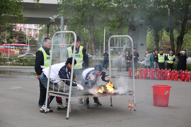 这次演练完成了突发火灾情况下的应急疏散、消火栓水枪水带的连接和使用、床铺灭火、干粉灭火器灭火等四个科目,通过演练,检验了应急疏散和灭火行动预案的落实情况,提高了师生员工的安全意识和实际灭火技能,达到了预期的目的。演练结束后,保卫处张处长对演练进行了讲评。