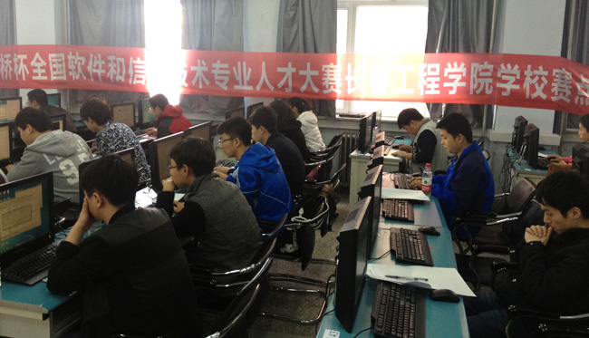 由我校计算机技术与工程学院承办的第六届“蓝桥杯”全国软件和信息技术专业人才大赛吉林赛区比赛于4月11日在我校举行。来自吉林大学、东北师范大学、东北电力大学、长春师范大学、长春职业技术学院等11所省内高校的173名学生及我校选拔出的36名选手共同参加了此次比赛。