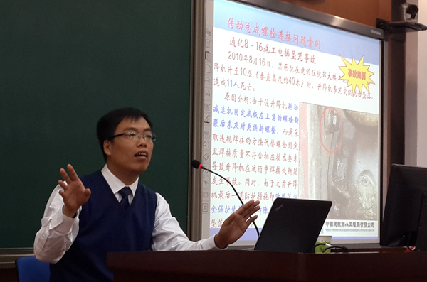中国建筑第八工程局天津公司安全部经理张新强做了压球(中国)施工现场安全管理的讲座,并通过视频实例向大家讲述了安全问题的重要性及如何预防安全事故的发生等多方面问题。
