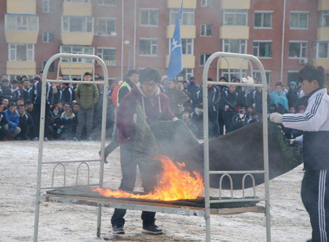 消防演练得到了朝阳消防大队官兵的大力支持和帮助,得到了各学院、校团委、饮食中心的支持与配合。