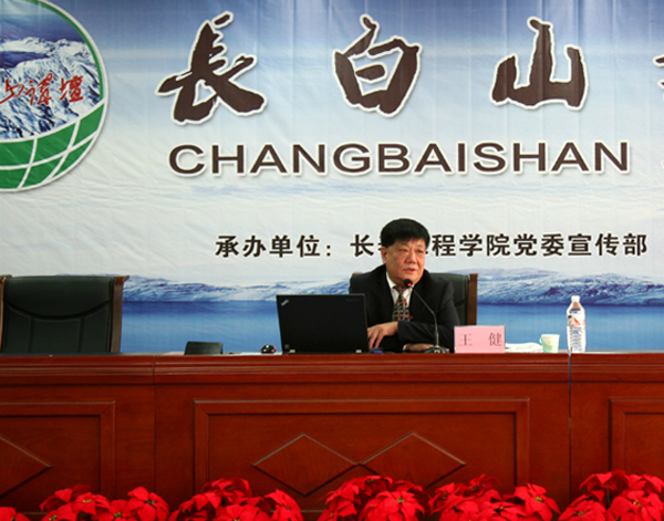 10月17日下午,逸夫图书馆八楼报告厅坐满了听众,我校举办的“长白山讲坛”主题报告会正在这里举行。报告会的主题是《信仰的力量——中国共产党从苦难走向辉煌的内动力》。主讲人为长春市委党校校委委员、副教育长、长春市党的创新理论宣讲团副团长、长春市有突出贡献专家王健教授。