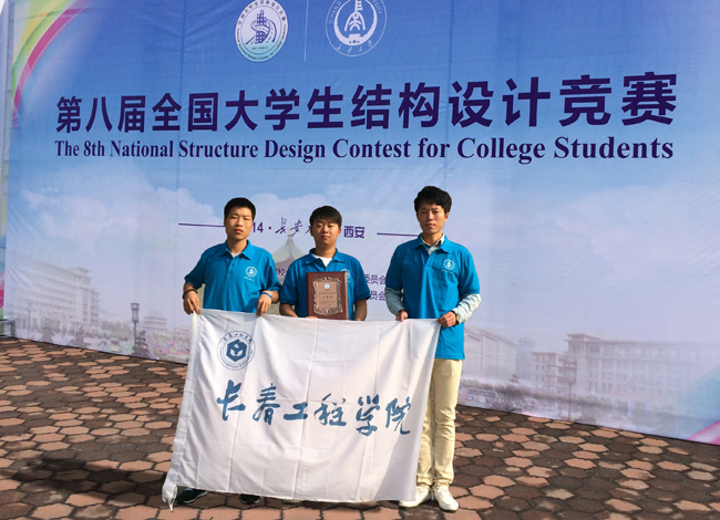 9月17-20日,由国家教育部、住房和城乡建设部、中国土木工程学会联合主办,由长安大学承办的第八届全国大学生结构设计竞赛在长安大学举行。竞赛的赛题是“三重檐攒尖顶仿古楼阁模型制作与测试”,经过结构造型与体系确定、理论分析、现场模型制作、叙述答辩和振动台加载五个环节的激烈角逐,最后我校由土木工程专业学生王永宝、宁显浩、谢晓东组成的代表队荣获三等奖。