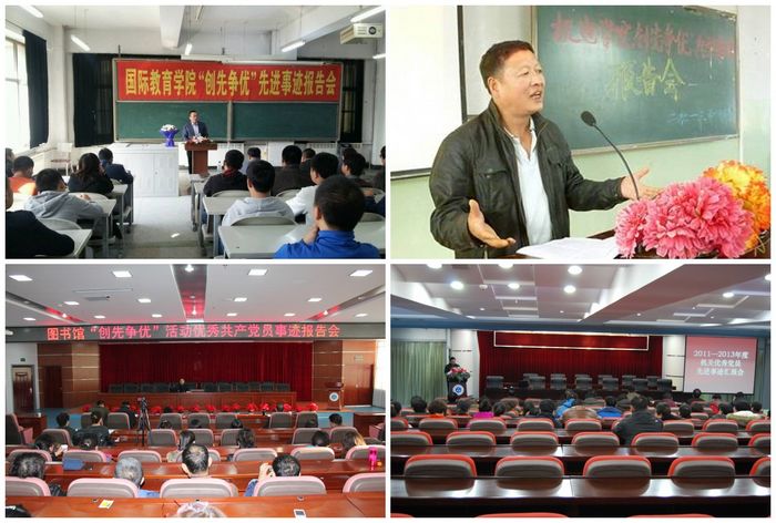 9月—12月间,各基层党委(党总支、直属党支部)组织开展了2011—2013年度“创先争优”先进典型事迹宣传活动。全校教职工党员代表、学生党员、入党积极分子等参加了活动。校党委组织部及有关部门负责同志参加了各单位的事迹报告活动。