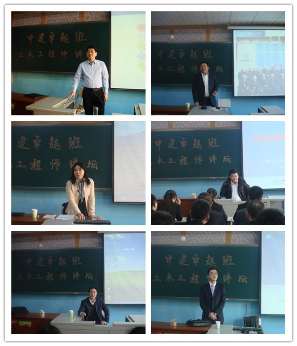 本次讲坛聘请了中建系统的6位工程技术专家进行现场工程师知识讲座。他们分别是中国建筑第八工程局天津公司的亓立刚总工程师、柳向辉总经济师、人力资源部惠乐怡经理,中国建筑第一工程局三公司人力资源部的常利红经理、姜金富项目总工程师和商务经理贺保荣,几位专家结合具体的工程案例,分别从超高层建筑工程施工关键技术、工程商务知识、职业生涯规划等几个专题方向做了内容精彩丰富的讲座。