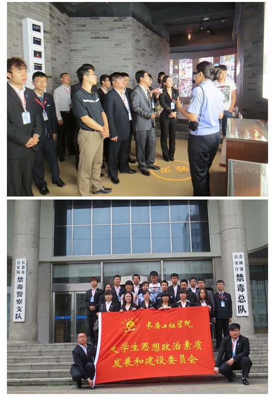 “6·26”国际禁毒日即将来临之际,为让更多的大学生认识毒品的危害,提高对毒品的防范意识,6月20日上午,学生处组织部分学生参观了吉林省禁毒教育基地,让学生们亲身体验了“禁毒”过程,观看了各种各样的毒品以及吸毒器具,这次特殊的旅程给同学们的心灵带来了巨大震撼。