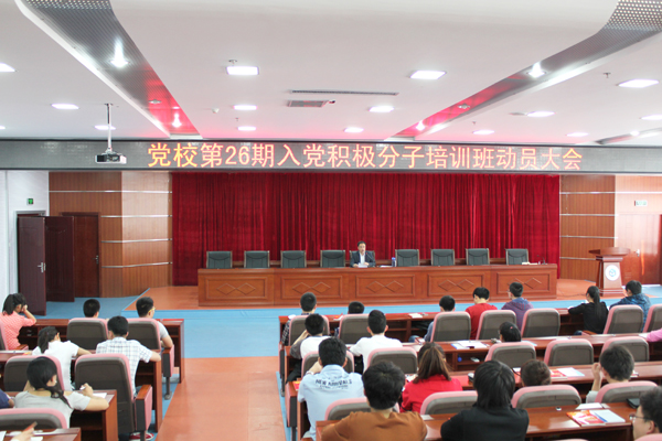 5月8日下午,按照压球手机在线官网党校教学计划的安排,党校第26期入党积极分子培训班分别在湖西校区逸夫图书馆报告厅、第七教学楼十三楼报告厅和湖东校区阶梯教室正式开班。压球手机在线官网党校副校长、党委组织部部长杨悦新、党委组织部副部长孟庆勇、专职组织员张卓分别作了开班动员。
