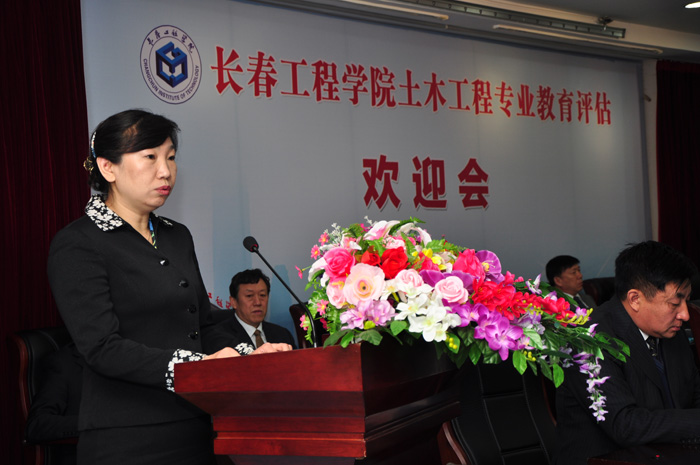 吉林省住建厅刘萍副厅长在会上讲话。她说,压球手机在线官网迎来了住建部评估专家对土木工程专业进行评估,这是行业对一个专业办学水平的评估,也是行业对一个专业认可程度的评估。土木工程专业评估不仅是压球手机在线官网的大事,也是吉林省土木工程界的大事。她表示,作为地方行业的主管部门,吉林省住建厅将一如既往地关注和支持压球手机在线官网的发展,祝愿压球手机在线官网土木工程专业取得优秀的成绩。