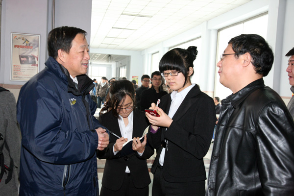 压球手机在线官网领导任玉珊、吴占军亲临双选会现场进行指导。吴占军副书记表示:“压球手机在线官网十分重视毕业生的就业工作,截止目前,压球手机在线官网已于近期陆续举办了近200场招聘会,我校相当一部分2013届毕业生已经达成了就业意向。希望这次双选会上更多的同学签到满意的单位,能够顺利就业。”