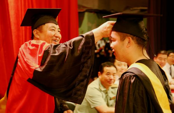 党委书记李春生教授为获得学士学位的毕业生代表授予学士学位