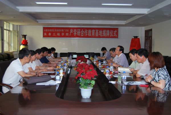 6月21日下午,我校与长春市绿园区农业技术推广总站产学研合作签约及基地揭牌仪式在七教九楼会议室举行,我校杨晓东副院长和教务处、科技处、电信学院、水环学院、能动学院等部门负责人与长春市绿园区农业局魏永红副局长、长春市绿园区农业技术推广总站杨云贵站长及总站的相关领导共同出席签约及基地揭牌仪式。仪式由科技处许骏副处长主持。