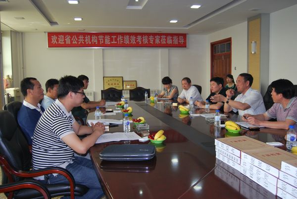 6月20日,以省直机关事务管理局公共机构节能工作处处长张立松为组长的公共机构节能减排绩效考核组来我校检查,后勤管理处、后勤服务总公司以及资产经营公司等相关部门负责人在7教10楼会议室接待了检查组一行。
