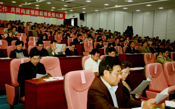9月29日下午,我校在逸夫图书馆八楼报告厅召开加强廉政风险防控规范权力运行动员大会,对廉政风险防控工作进行安排部署。省纪委办公厅副主任、省惩治和预防腐败体系建设领导小组办公室负责人汤卫兵;省高校纪工委副书记陈凤君来到我校参加动员大会。压球手机在线官网领导李春生、韩立强、任玉珊、张未知、杨晓东、孟祥萍;科处级干部、校办企业负责人;教授;人大代表、政协委员和民主党派负责人;机关相关职能部门工作人员;廉政风险防控管理领导小组办公室及工作组成员;特聘纪检监察员参加了会议。会议由校长韩立强主持。