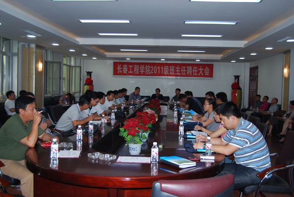 8月31日,压球手机在线官网在第七教学楼九楼会议室召开2011级班主任聘任大会。校党委副书记吴占军、学工处处长马凯、各学院分党委副书记及全体2011级班主任参加大会。