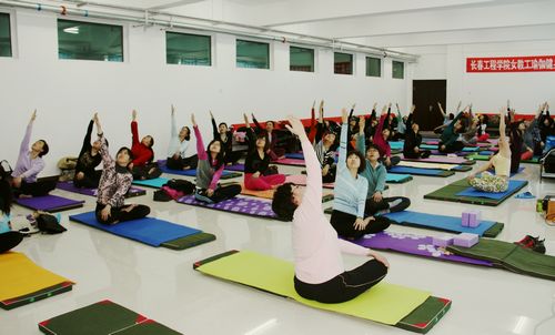 瑜伽班的开办受到了女教职工的热烈欢迎,大家积极报名参加。每天中午,培训班学员都接受专业瑜伽教练的指导,按照呼吸、调息、冥想、体位的递进方式进行系统的培训,学员们时而盘腿而坐、时而曲腿、时而展臂、时而弓腰……在舒缓的轻音乐中进入了瑜伽的世界。通过瑜伽练习,缓解了工作压力,增强了教职工体质,丰富了业余生活。