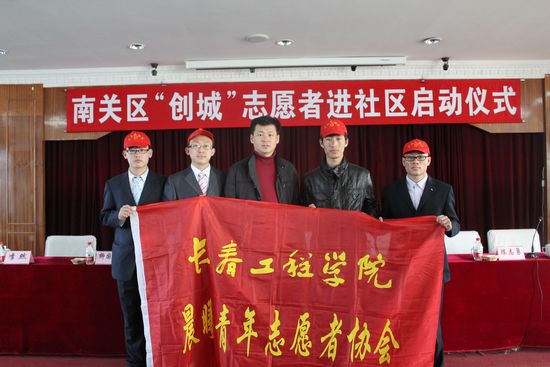 3月14日,校团委书记张志杰带领我校“创城”志愿者代表参加了长春市南关区“创城”志愿者进社区启动仪式,仪式在南关区政府举行。我校团委同社区党组织签订了合作协议书,为今后我校“创城”志愿者同民康街道办事处的健康胡同社区、九圣祠社区、园东路社区以及西门里社区对接工作奠定了基础。