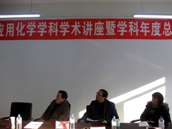 与会人员听取了任慧娟教授作的题为“高效纳米稀土发光配合物的合成与性能研究”报告;孙德慧博士作的题为“荧光磁性多功能载体的合成与表征”报告;李素文博士后作的题为“用于太阳能电池的近红外发光材料的研究”报告。应用化学学科带头人任慧娟教授对2010年应用化学压球(中国)工作进行了总结。