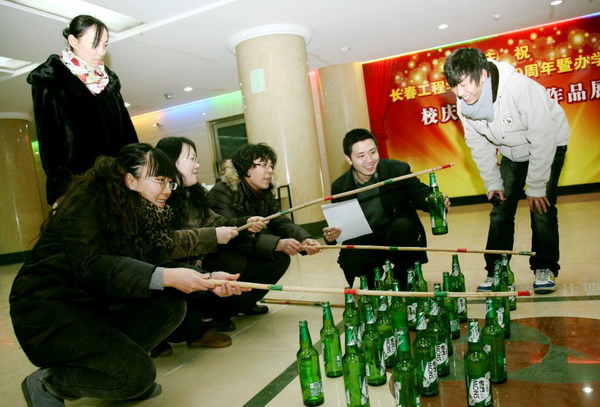 12月29日下午,为迎接新年的到来,第七教学楼一楼大厅张灯结彩,到处洋溢着喜庆的气氛,机关党委、机关工会、机关妇委会组织机关工作人员开展了丰富多彩的趣味游艺活动。