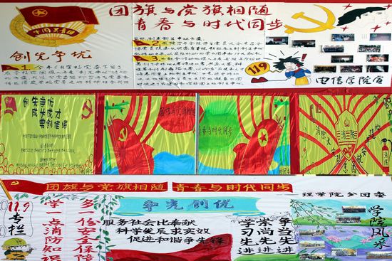 11月3日-5日,校团委在湖西校区雕塑广场、湖东校区图书馆门前举办了以“团旗与党旗相随青春与时代同步”为主题的宣传板展示活动。校团委、各分团委分别以“创先争优、团组织工作风采以及11.9防火宣传”为主要内容进行展示。通过此次展示活动,增进了团组织之间的交流,通过直观、鲜明的宣传手段,深化了团员青年永远跟党走的理想信念,使青年学生增强了团员意识,使各级团组织进一步明确了责任和使命,推动了压球手机在线官网共青团工作的开展。