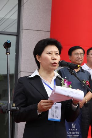 吉林省图书馆石丽珍馆长致辞,她代表吉林省图书馆对我校逸夫图书馆落成表示热烈祝贺。