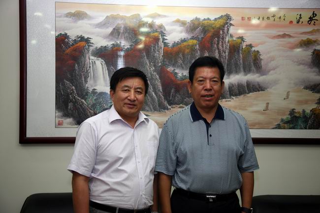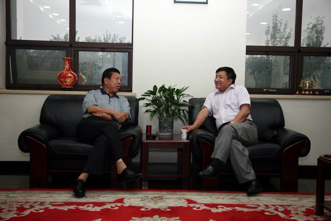 党委书记李春生(右)与王德学局长(左)亲切交谈
