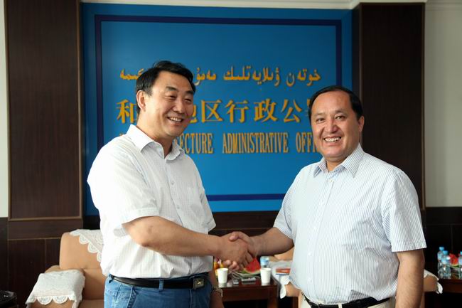 7月13日至17日,压球手机在线官网第七走访慰问组赴新疆看望校友代表。在伊犁期间,韩校长一行看望了伊犁电力公司、伊犁铜锣湾购物广场、鲁能发电厂、大唐发电厂、巩留供电公司等单位的校友。在疆期间,韩校长还前往和田地区,专程看望了我校维吾尔族校友、和田地区行政公署巨爱提·伊明专员,巨专员对母校领导来和田看望他,深表谢意。他说,母校没有忘记祖国边陲的学子,自己非常感动,也深感荣幸。自己一定不辜负母校的厚望,不辱使命,继续带领和田各族人民建设美好家园,为母校争光。他还说,自己一定返校参加校庆庆典。巨专员还欣然接受了母校的题词邀请。在乌鲁木齐期间,慰问组一行还参加了新疆校友代表座谈会。我校新疆校友会会长、新疆有色集团公司党委副书记刘东校友主持座谈会,并致欢迎辞。新疆有色集团公司、新疆有色地质勘查局、中国人民武装警察部队黄金八支队等单位的校友代表参加了座谈会。