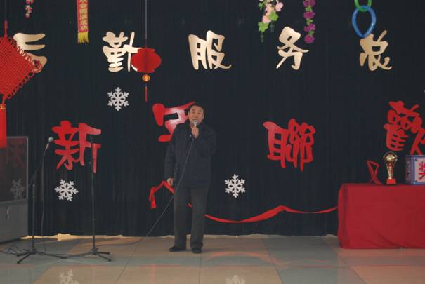首先,后勤服务总公司总经理姜洪全同志致新年贺词,他代表总公司全体职工,向在百忙中参加此次活动的校领导表示欢迎和感谢!向关心总公司发展的各位领导和朋友,向辛勤工作了一年的全体员工,表示了衷心的感谢和崇高的敬意。