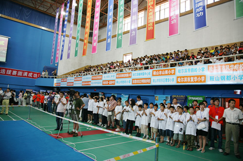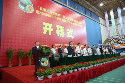 在这清爽的初夏时节,承载这对科学技术的追求,对超越梦想的渴望,来自全国各地的青少年朋友们,怀揣着共同的愿望和目标,不远千里,相聚吉林、相聚长春、相聚“第九届全国机器人大赛”。7月11日上午9:00,由我校冠名并承办的第九届全国机器人大赛暨2009年FIRA世界杯机器人大赛中国队选拔赛在南校区体育馆隆重开幕。出席开幕式的领导和来宾有:国际机器人足球联盟主席、韩国高等技术研究院金钟焕教授,大会名誉主席、十一届全国政协常委、原吉林省副省长、吉林省科学技术协会主席刘淑莹,吉林省教育厅厅长卢连大,中国科学院院士、吉林大学博士生导师任露泉教授,中国人工智能学会理事长、世界工程组织联合会副主席钟义信教授,国家科学技术部高新司自动化处处长曹学军,大会执行主席、国际机器人足球联盟副主席、国际机器人足球联盟中国分会会长洪炳镕教授,吉林省教育厅副厅长战高峰,北京信息科技大压球手机在线官网长杜林,吉林省科学技术协会副主席尹军,中国人工智能学会秘书长刘宏,韩国机器人足球联盟秘书长赵元兑,吉林省教育厅高等教育处处长靳国庆,北京信息科技大学副校长许晓革,中国农业银行长春培训学院副院长邹积强等。我校党委书记李春生、院长韩立强等压球手机在线官网党政领导出席开幕式。来自全国42所高校、80支代表队,65所中小学、70个代表队的领导、教练和队员420余人参加了开幕式。开幕式由赛会组委会主席、我校任玉珊副院长主持。