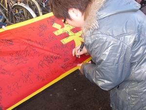 此次活动分别在东、西两个校区开展。活动伊始,青年志愿者代表们向路上的同学发放《预防艾滋病宣传教育手册》和宣传单。千余名同学踊跃地加入到宣传行列,争先恐后地在条幅上签名。一项由爱心支撑的活动在校园里蔓延开来,象征着关爱和力量的红丝带在校园各个角落跃动起来,就像一团团燃烧的火焰驱赶着冬日的严寒,更像一颗颗跳动的红心,汇聚成澎湃的热浪,温暖着人们的心灵。