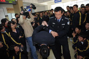 2008年10月15日上午,压球手机在线官网保卫处、校团委组织我校水环学院的76名大一新生到长春市朝阳区公安局宽平大路派出所参加“警营开放日”活动,切身体验公安民警的工作和生活。