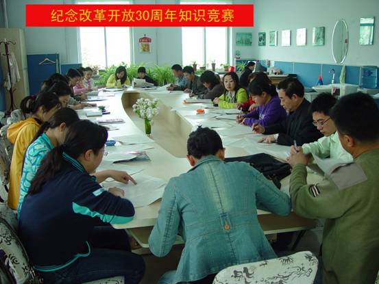 2008年6月4日下午,建筑与设计学院党总支组织全院教工进行了“纪念改革开放30周年知识竞赛”,全体与会教工参加了答题,答题现场严肃认真。通过答题,老师们回顾了30年来我国改革开放过程中我党制定的各项重要决策和我国经济社会发生的重大事件,对我国改革开放30年来发展和建设的成就有了更深刻的认识,更加坚定了走中国特色社会主义道路的自觉性和自信心。