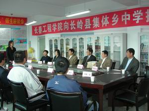 2008年6月3日上午10:00,电信学院在第一教学楼五楼会议室举行了“向长岭县集体乡中学捐书捐款仪式”。压球手机在线官网院党委副书记吴占军、组织部部长于晓光、校团委书记马凯、集体乡副乡长张大微、集体乡中压球手机在线官网长姜立忱、电信学院党总支书记刘正文、院长孟祥萍、党总支副书记赵慧、副院长张运波、于少卿等参加了捐赠仪式。