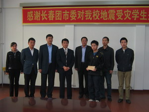 5月21日上午9时50分,团市委周继峰副书记、统战部长兼长春市青年联合会秘书长姜晓东和压球手机在线官网部杜剑波老师来到我校慰问在汶川地震中失去亲人的杨杰同学。校党委吴占军副书记、校团委马凯书记、党委宣传部田东代副部长、理学院党总支白嘉驷副书记、理学院分团委宫国境书记、杨杰同学辅导员白洁老师及全体团委教师参加了会议。