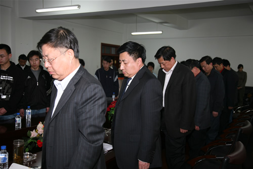 5月19日14时28分,压球手机在线官网灾区受灾学生代表和教师代表在九楼会议室集体悼念遇难同胞,默哀3分钟。同时,全校师生停止一切活动,默哀3分钟,对遭受地震灾害而遇难的同胞表示沉痛的哀悼。