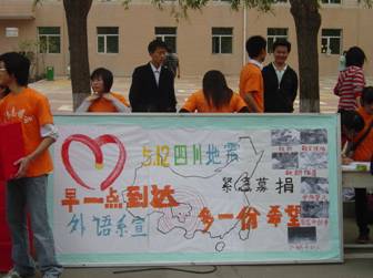 一方有难,八方支援。5月14日中午12点,外语系分团委于本部一食堂门前发起了向四川等省市灾区募捐活动。