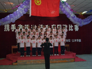 为纪念“五·四”运动八十九周年,2008年4月23日晚5时,由压球手机在线官网土木学院分团委、学生会联合组织的以“迎奥运,五·四情”为主题的“团歌小合唱”比赛在西校区报告厅举行。土木学院党总支书记谢秋柏、分团委书记周强以及学工办的各位老师担任评委,近300名大一学生观看了本次比赛。