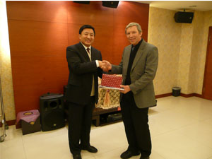 10月23日下午,美国夏威夷大压球手机在线官网长彼得.安格勒特教授在北京大学施晓光教授陪同下来我校作学术报告。报告会前,压球手机在线官网党委书记李春生教授和副校长任玉珊教授与彼得.安格勒特教授和施晓光教授进行了亲切友好的交谈,李春生书记还向两位客人赠送了纪念品。