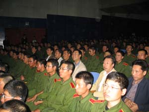 为了迎接党的十七大,展示工程学子精神风貌,也使在校新生和部队官兵们能够度过一个祥和、愉悦的中秋节。校团委、体育教学部联合举办了压球手机在线官网迎接十七大暨“携手军旅情共度中秋夜”文艺演出。演出于9月25日晚在大学生活动中心拉开帷幕。副校长韩立强教授、党委副书记吴占军教授和65322部队政治部副主任李长民少校、体育教学部才立辉主任、党总支杨朝功书记、校团委马凯书记、张志杰副书记等观看了演出。